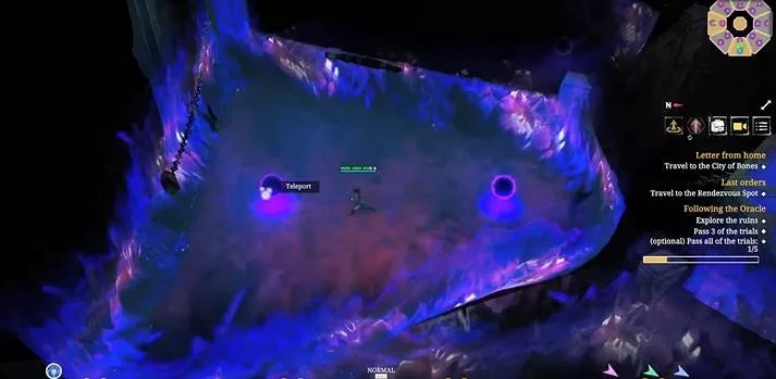 Переместившись во вторую часть с двумя «Фиолетовыми порталами», нам нужно взаимодействовать с «Фиолетовым шаром» находящимся дальше от центра. Таким образом нас перенесет в следующую часть комнаты магии.