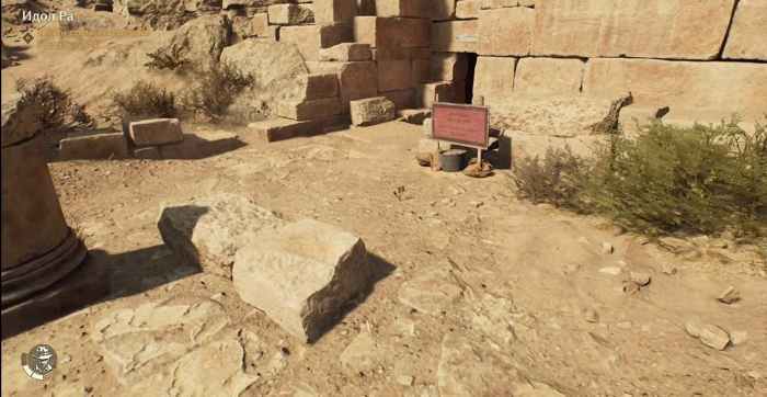 Após descer à tumba, precisaremos resolver um pequeno quebra-cabeça envolvendo três discos. Os discos estão localizados na sala; pegue-os e coloque-os na parede. Um feixe de luz aparecerá no topo da parede, apontando para ela. Precisamos pegar a marreta, que está localizada na sala perto da mesa, e quebrar a parede de pedra. Isso abrirá uma passagem para uma sala secreta. A relíquia “Estela da Luz” estará na sala; pegue-a e retorne para Omar.