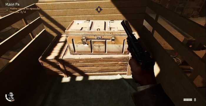 A quarta e última relíquia pode ser encontrada no acampamento inimigo, em uma garagem com carros. Elimine os soldados do acampamento e inspecione cuidadosamente todos os locais. É importante encontrar uma tenda com um bilhete sobre a mesa. Este bilhete contém o código 0805 para o cofre no Ídolo de Rá, que abre uma gaveta com um cadeado de combinação. Na garagem, em um caminhão, há uma gaveta com um cadeado de combinação contendo a relíquia “Estela da Colheita”. Colete-a e nossa tarefa de encontrar as relíquias estará completa.