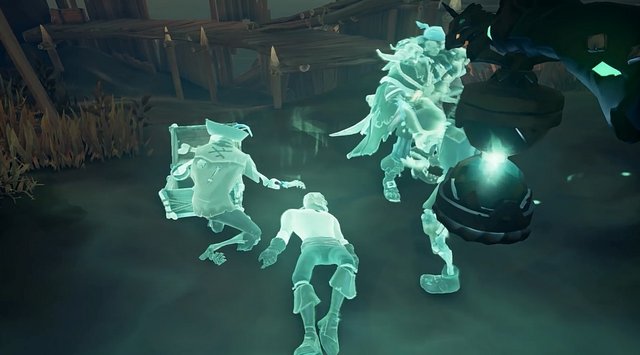 Начало задания начинается на корабле призраке. Куда попадают пираты, когда умирают в бою. Что то вроде точки сохранения, а потом на самом корабле открываются двери и можно продолжать игру. Ну и эта часть локации не обошлась без встроенной миссии.